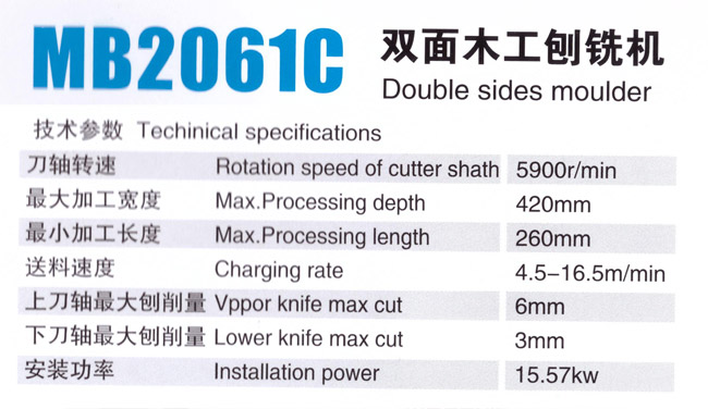 | 木工刨铣机 >> MB2061C双面木工刨铣机